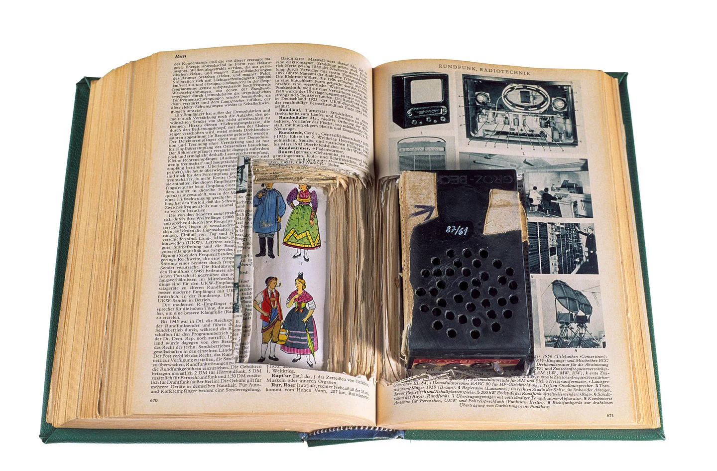 Hidden radio inside of an encyclopedia by an inmate of Ludwigsburg prison, Germany.